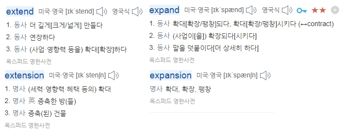확장하다 / 확장의 뜻을 가지고 있는 EXTEND / EXTENSION 과 EXPAND / EXPENSION의 차이를 알아보겠습니다.