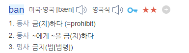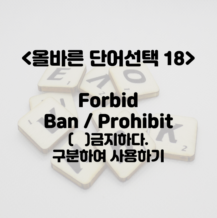 forbid처럼 금지하다라는 뜻을 가지고 있는 3개의 단어 BAN / FORBID / PROHIBIT 에 대해 알아 보겠습니다.