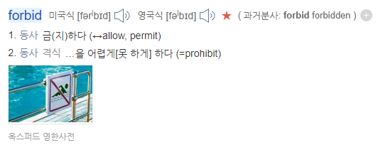 forbid는 강력한 "법"의 규제는 아니나 하지말아야 하는금지사항은 맞습니다.