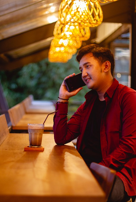 He is calling his friend at the cafe.