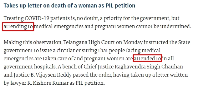 Attend to 명사 라고 표현될때는 "~을 처리하다" "~에 신경쓰다" "~에 주의하다" 라는 뜻으로 해석 됩니다.