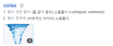 Vortex는 소용돌이라는 뜻을 가지고 있는 명사 입니다.