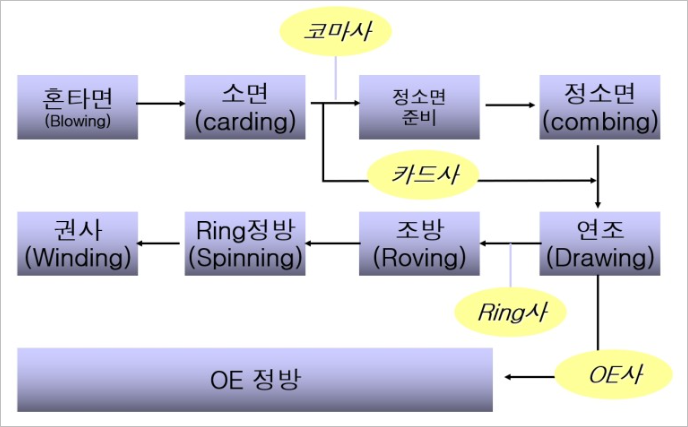 방적의 공정을 보면 아래와 같습니다.