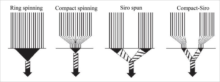 여기 아주 좋은 비교 자료가 있습니다. 일반 링정방 / 컴팩사 / Siro yarn / Siro compact Yarn(Eli-wtist)에 대한 차이점을 아주 잘 나타낸 자료 입니다.