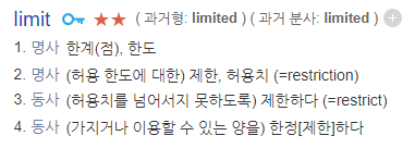 Limite 가 제한 이라는 명사형과, 제한하다 라는 동사형 두가지를 가지고 있고,