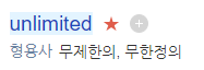 이 단어는 '형용사'형으로 무제한의,무한정의 라는 뜻을 가지고 있습니다. 대부분 이미 알고 있는 단어일텐데, 이 단어 하나만 가지고도 설명할께 참으로 많습니다.