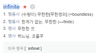 그다음 오늘 비교할 단어인, Infinite에 대해 알아 보겠습니다.