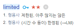 Limit에 보면 과거형도 Limited 라고 되어 있는데 형용사형 Limited는 뭐죠? 라고 궁금해 하실 수 있습니다.