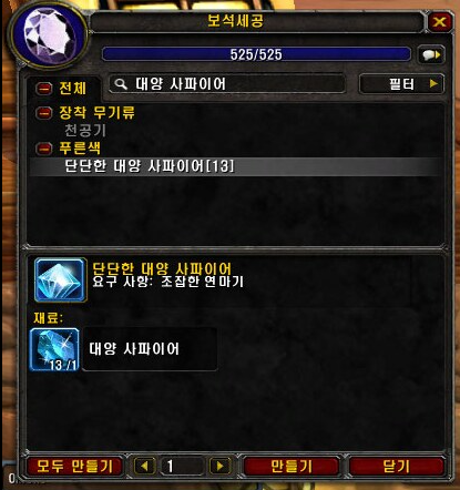 게임 WOW의 보석세공 메뉴