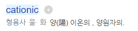 Cationic은 형용사로 양이온, 양원자 라는 살면서 한번도 들어본적 없는 영단어 입니다.