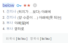 Below 역시 아래에 라는 뜻을 가지고 있지만 가장 큰 차이점은 '어떠한 기준'을 두고 그 아래에 있는 경우 사용할 수 있습니다.