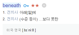 '~아래'라는 뜻을 가진 단어중 친숙하지 않은 Beneath 라는 단어가 있습니다.