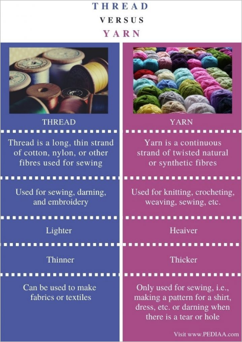 그래서 무언가 급하게 바느질을 해야 하는데, 필요한 실과 바늘을 사야 할때는 Thread and Needle 이라고 해야지 맞는 표현이구요, 만약 Yarn and needle 이라고 했다면 뜨게질용 실과 대왕바늘을 줄지도 모릅니다.