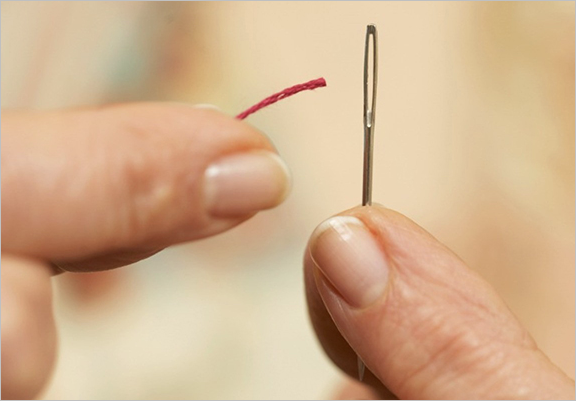이를테면 우리가 양말이나 옷에 구멍이 나서 꿰매야 하는 상황이 왔을때 바늘 구멍에 들어갈 수 잇는 정도의 실을 떠올린다고 생각 하시면 됩니다.