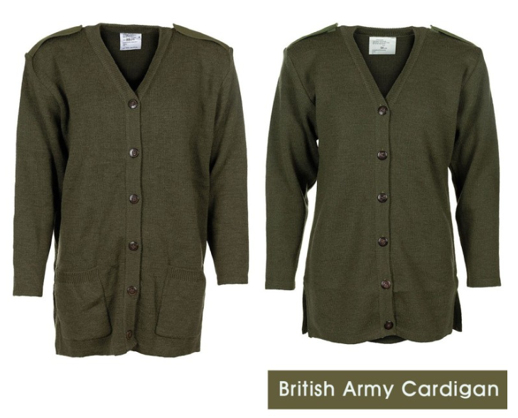 카디건은 전쟁에서 활동성이 용이하게 앞을 트고 단추를 달아 쉽게 입고 벗을 수 잇도록 만들어져 있으며, 추위를 견뎌내야 했기에 체온을 유지하기 용이한 스웨터소재로 만든 옷 입니다.