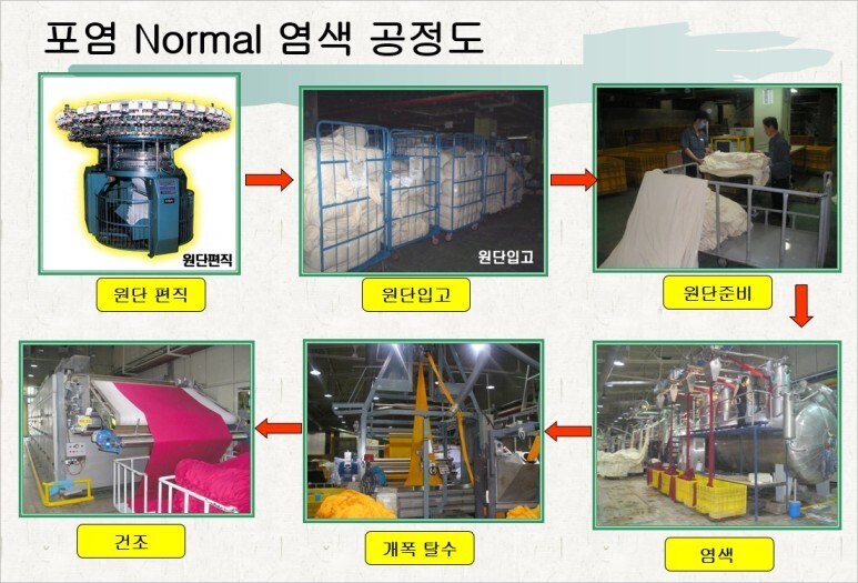 먼저 이 공정은 후염 공정이므로 기존에 사염후 STRIPE로 편직이 되었다면 공정 방법이 달라지게 됩니다.