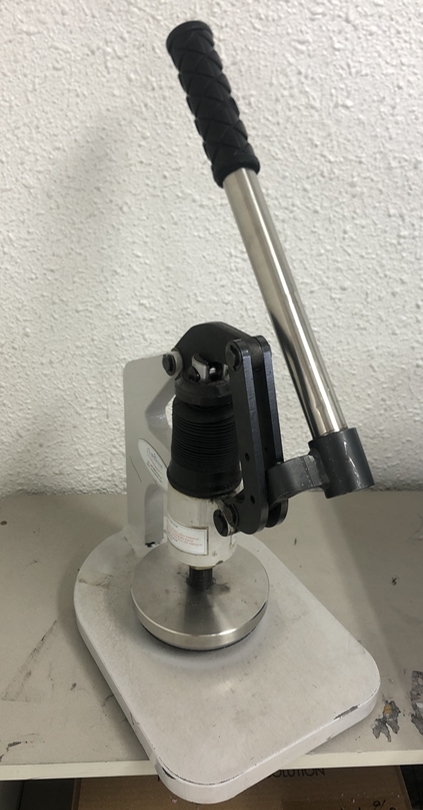 저 동그란곳 아래 칼날을 보호하기 위해 아크릴판이 있고 그 사이에 원단을 넣어 중량을 측정 합니다.