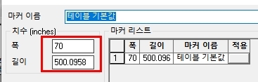 원단 폭과 길이를 설정하고(70"에 500yds로 넣고 합니다. 길이야 마커에 맞게 줄어드니 넉넉하게 넣습니다.)