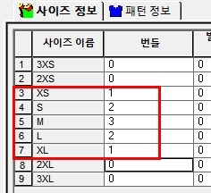 4. 원단의 종류와 해당 pattern 을 matching 해야 합니다.