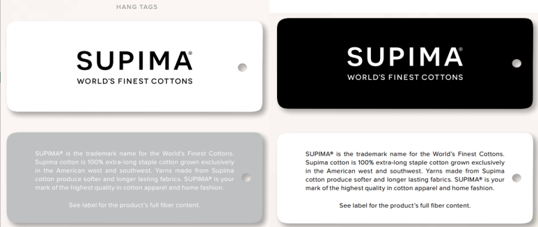 Supima.com site를 이용해 supima cotton을 구매했다면, 해당 brand에게 supima를 판매 했다는 인증서를 보내주고, supima에서 발행하는 hangtag을 구매할 수 있습니다.