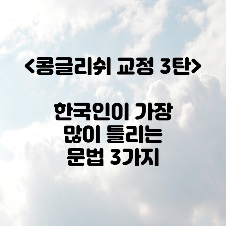 오늘 말씀 드릴 주제는 문법에 대한 교정인데 Konglish 에 대한 category로 엮어 보았습니다.