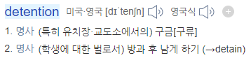 Detention 은 '구금' 이라는 뜻을 가지고 있습니다.