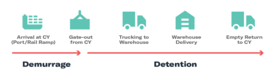 2. 이후 물건을 CY에서 pick-up해서 공장 창고에 하역후 빈 컨테이너가 다시 CY에 돌아오기까지는 Detention 입니다.
